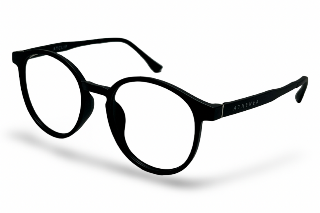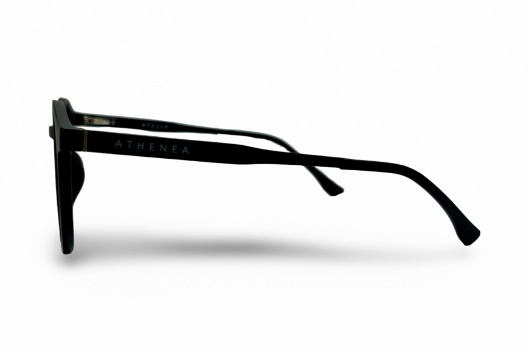 Los Athenea Clip On combinan diseño moderno, comodidad y practicidad: un armazón metálico negro para cristales graduados que incluye 5 clips magnéticos intercambiables para adaptarse a tu día.